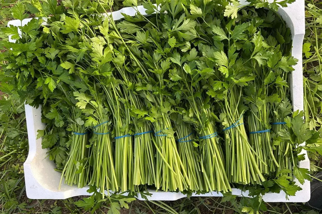 El perejil es una planta herbácea de hojas verdes planas o rizadas, con un aroma suave y ligeramente herbal. Sus raíces son delgadas y fibrosas, utilizadas en algunas recetas. Se adapta bien a climas templados y crece en suelos fértiles y húmedos. Es una planta bienal, aunque comúnmente se cultiva como anual. Sus hojas son las más usadas, tanto frescas como secas, en la cocina.